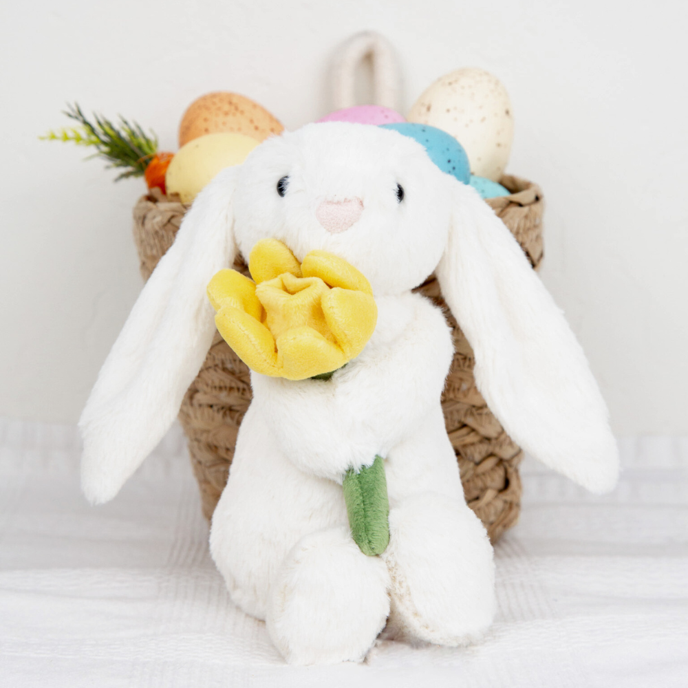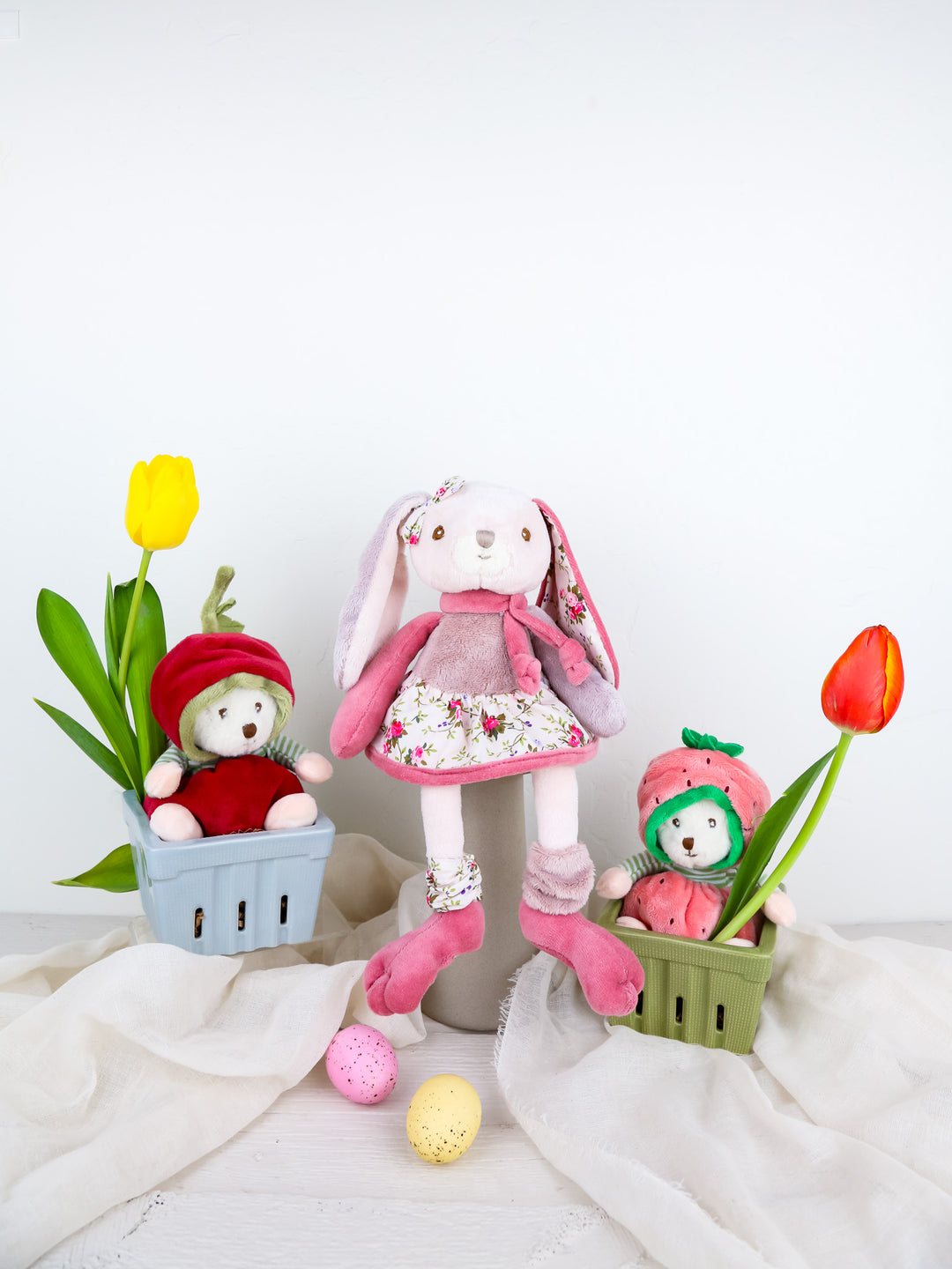 Adding an adorable bunny plush toy and other spring-themed stuffed animals that will be cherished long after the Easter festivities. We love real keepsakes for littles and adults who still cherish a stuffed cuddly companion. If you’re looking for a unique take on a bunny, check out the adorable, big footed Bibbi Bunny from Bukowski Bears. Bibbi Bunny and her animal pals are handcrafted with the utmost precision, mirroring the passionate vision of its founder, Barbara Bukowski. Made and based in the Stockholm region of Sweden.