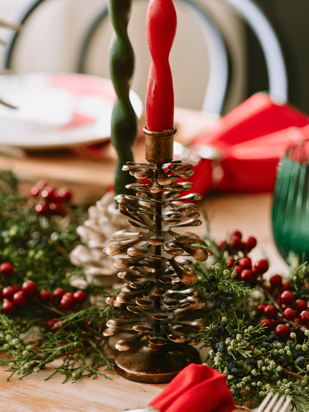 Infuse your space with rustic warmth using the Medium Metal Pinecone Taper Holder, an ideal piece for transitioning your decor from fall to winter. Whether displayed on a shelf, mantel, or table, this timeless taper holder adds a cozy, seasonal touch to your gatherings.