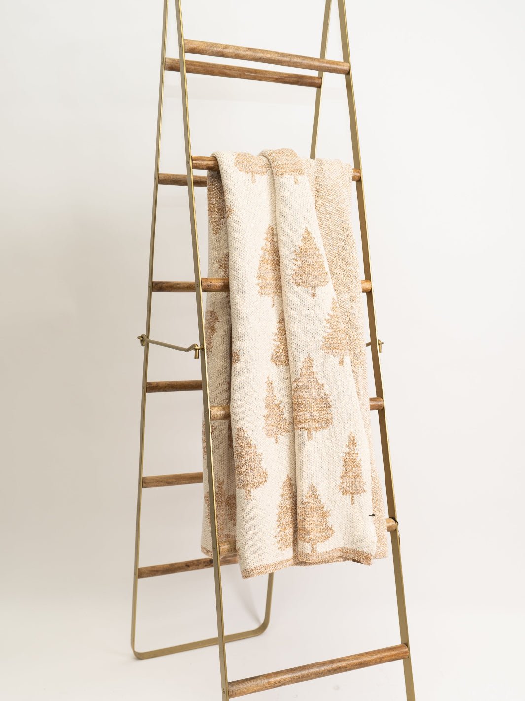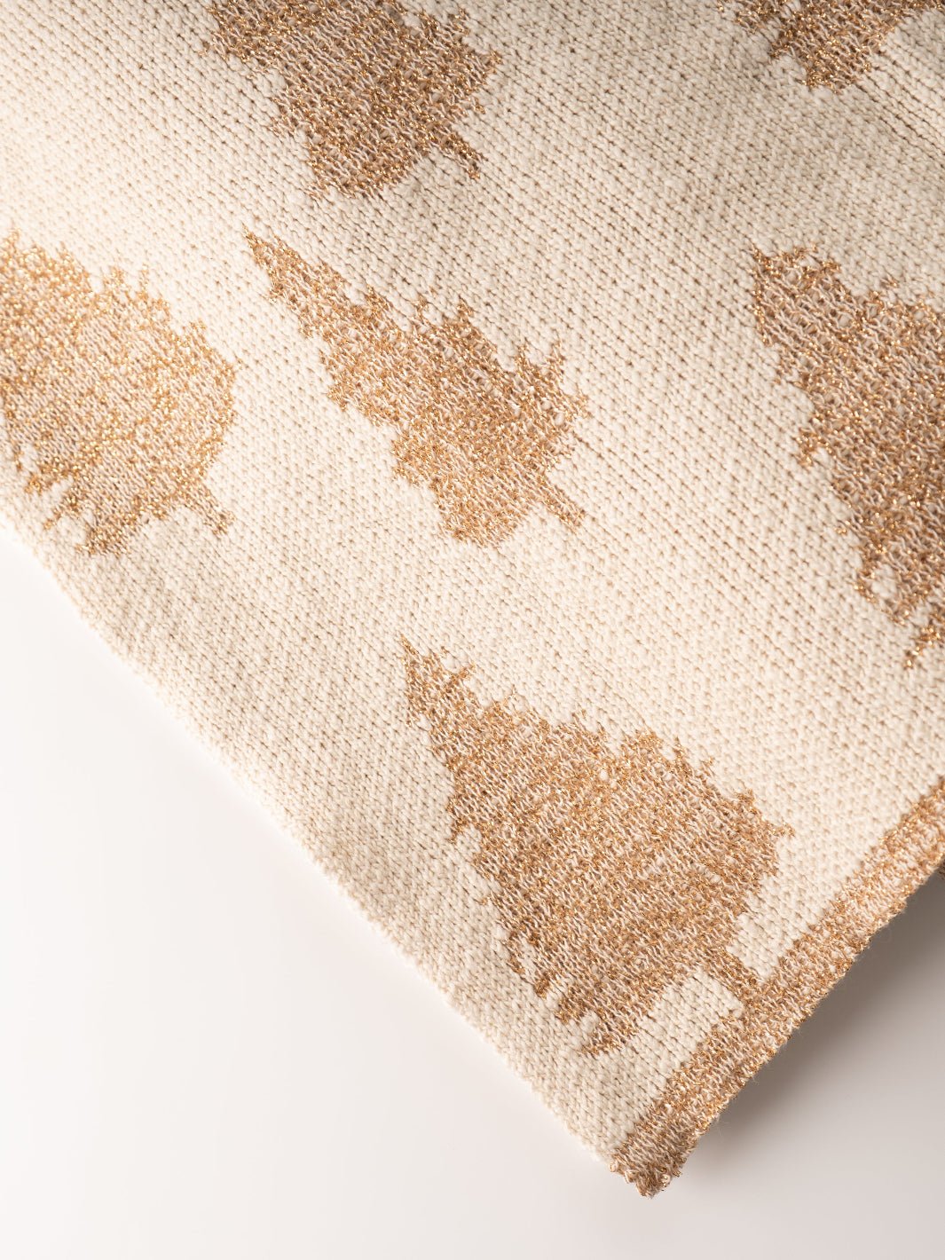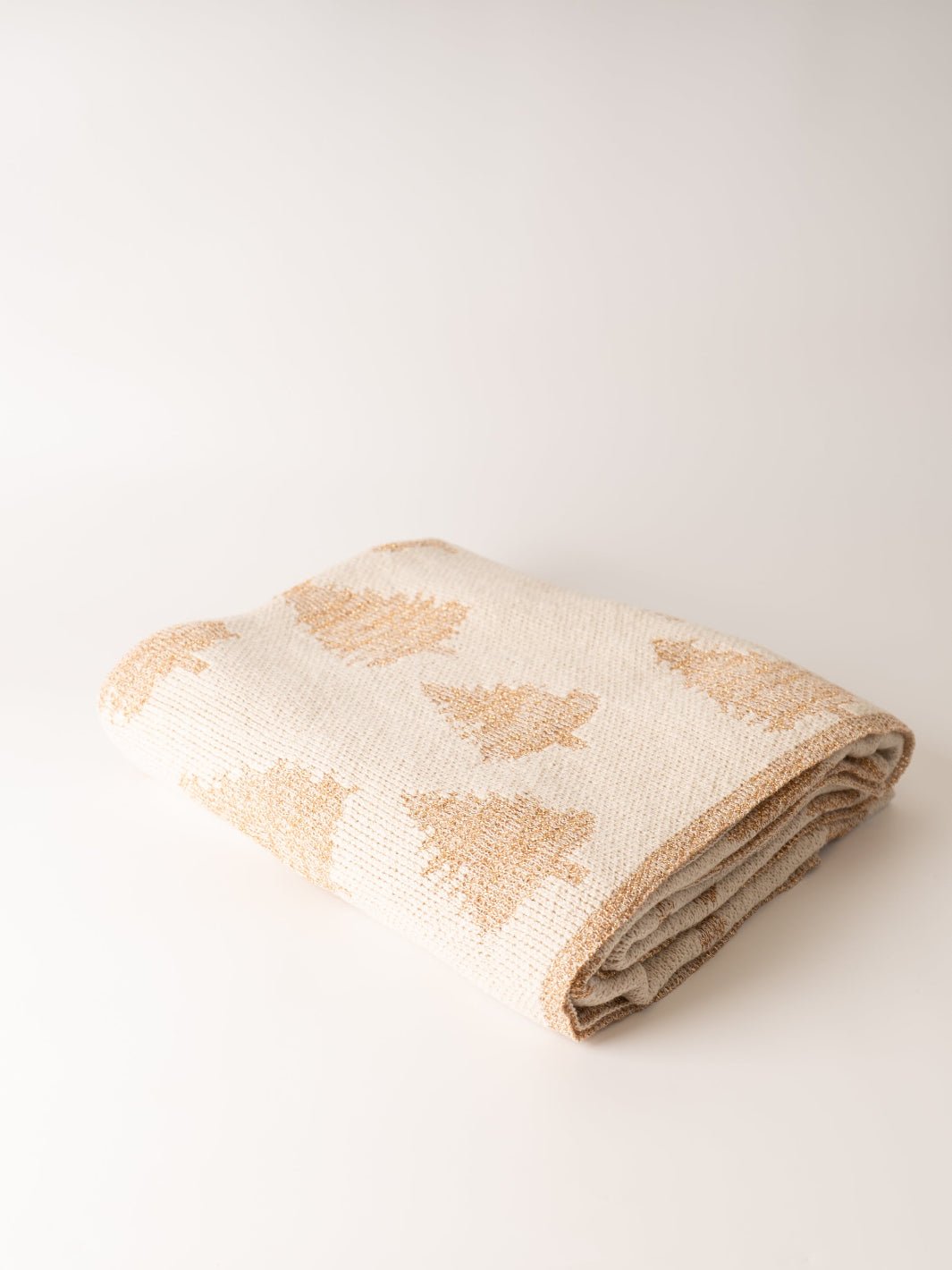 Bundle up in the cozy warmth of the Golden Trees Throw. Crafted from soft knitted cotton and accented with metallic thread embroidery, this throw adds a shimmering touch of elegance to your winter décor.
