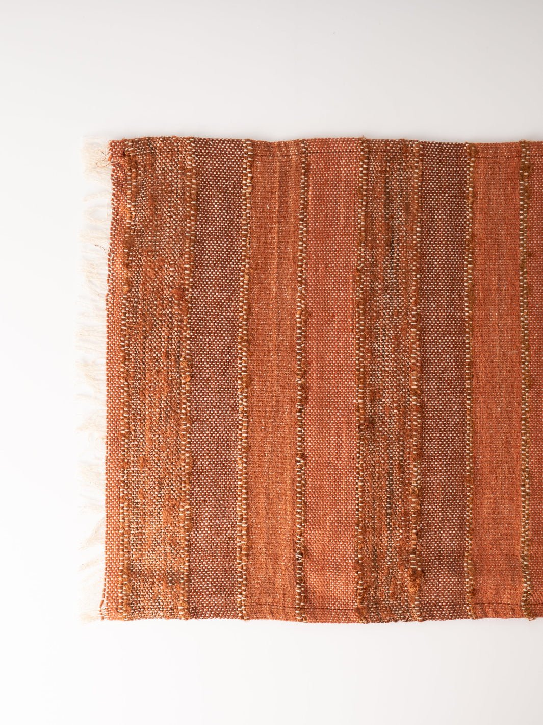 Elevate your dining space with this Slub Striped Table Runner, crafted from a woven blend and featuring charming frayed edges for a relaxed yet refined look.