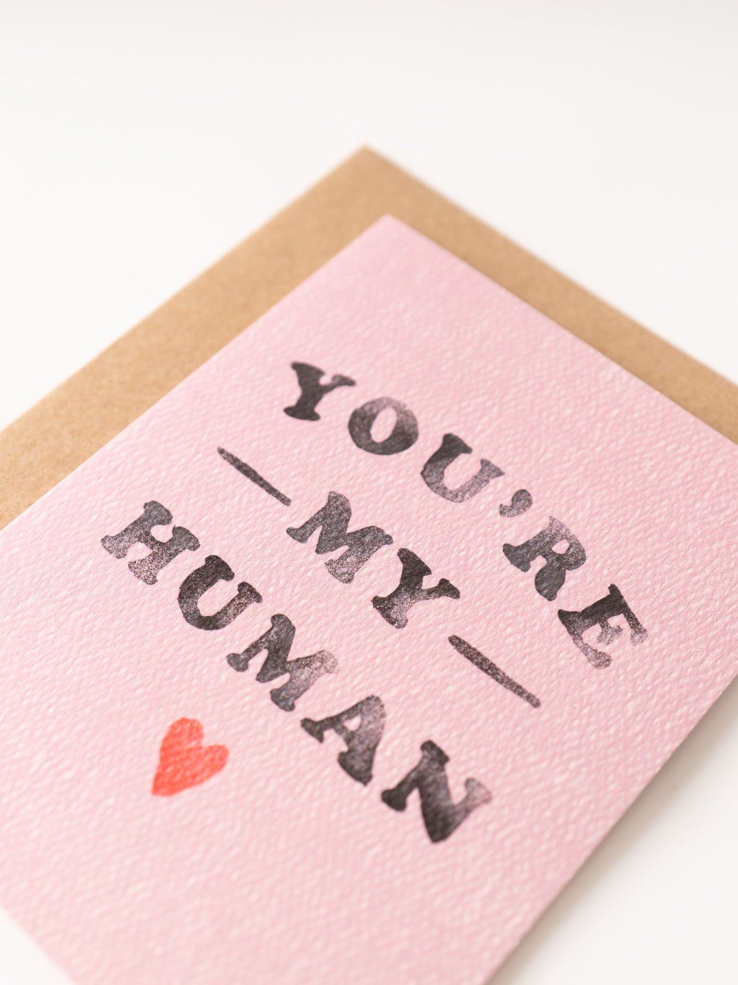 The You're My Human Card is the perfect companion to any Valentine’s gift or heartfelt surprise. Featuring the sweet phrase “You’re My Human” on the front, this card celebrates the special bond you share with someone you love. Blank inside for a personal message, it’s ideal for Valentine’s Day, anniversaries, or just because moments that deserve a little extra love.