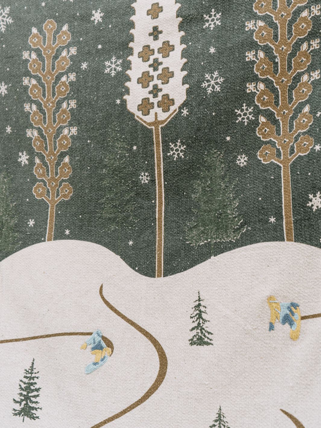 Wrap yourself in the essence of winter with the Woodland Throw. This tapestry-inspired piece features a woodland design and fringe-textured edges that capture the rugged feel of the season. Woven with intricate detailing of skiers carving the slopes, it blends earthy tones and natural patterns for a beautiful accent, perfect for draping over a chair, layering on a bed, or styling across your sofa.
