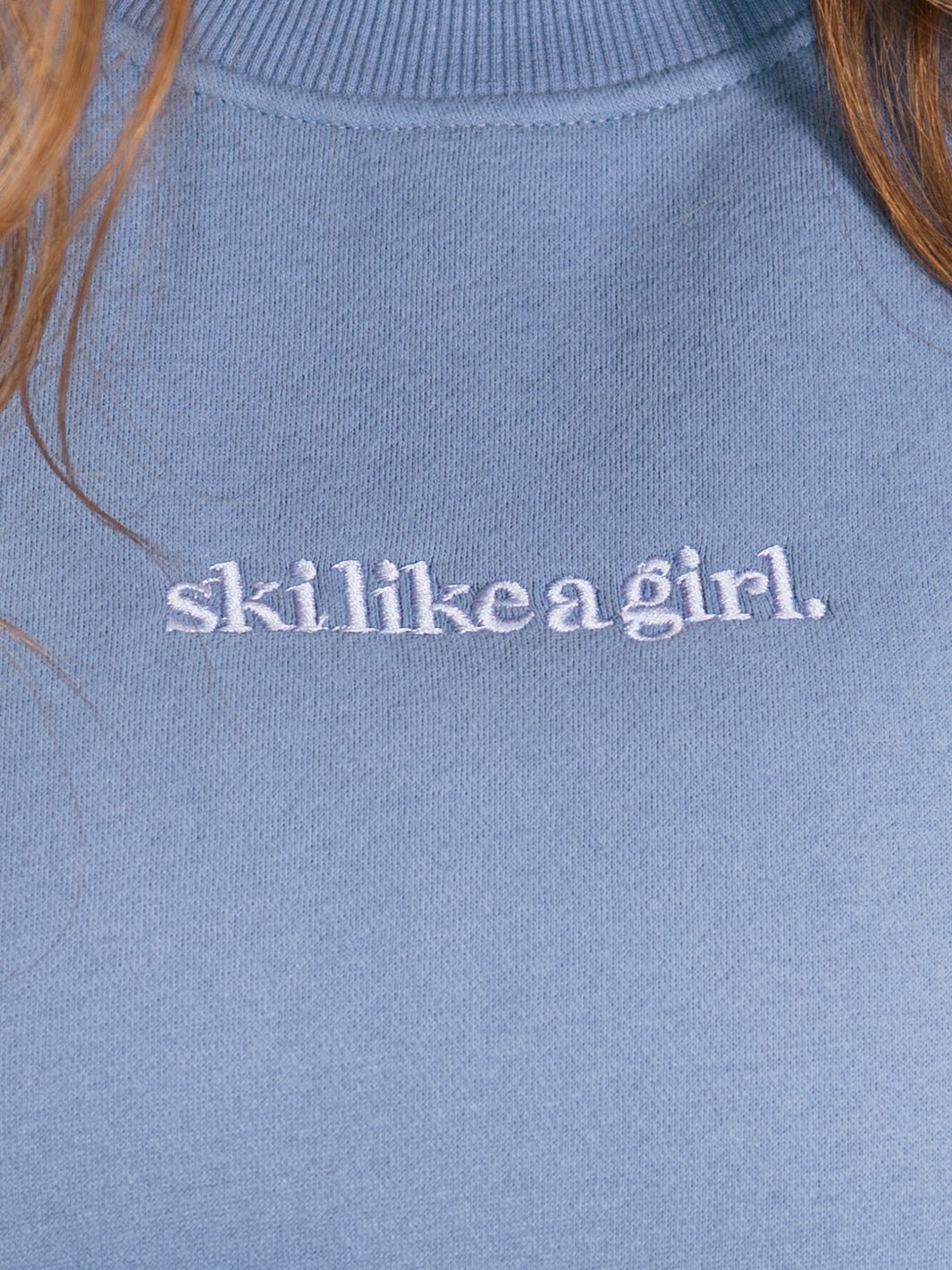 Keep it simple and cool in this classic crew sweatshirt, designed for adventurous women who bring their style to the slopes and beyond. With a laid-back fit, it’s perfect for layering up or lounging après-ski. It has the iconic "Ski Like a Girl™" slogan embroidered on the front.